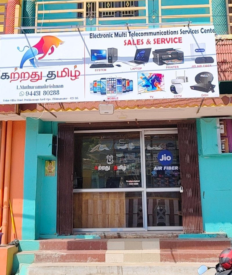 அனைத்து உறவுகளும் வணக்கம்!.. நமது சின்னமனூரில் பஞ்சாயத்து யூனியன் ஆபிஸ் பாதையில் உள்ள பேச்சியம்மான் கோவில் எதிர் புறம் அமைந்துள்ள நமது கற்றது தமிழ் சர்வீஸ் சென்டர், இங்கு அனைத்து விதமான LAPTOP, SYSTEM, PRINTER மற்றும் MOBILE , TV , DTH , CCTV, அனைத்...